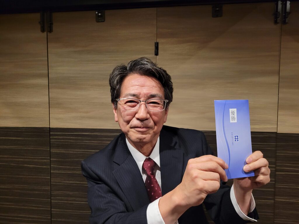 記念品は、優勝カップです。これで美味しいお酒を飲んでください。